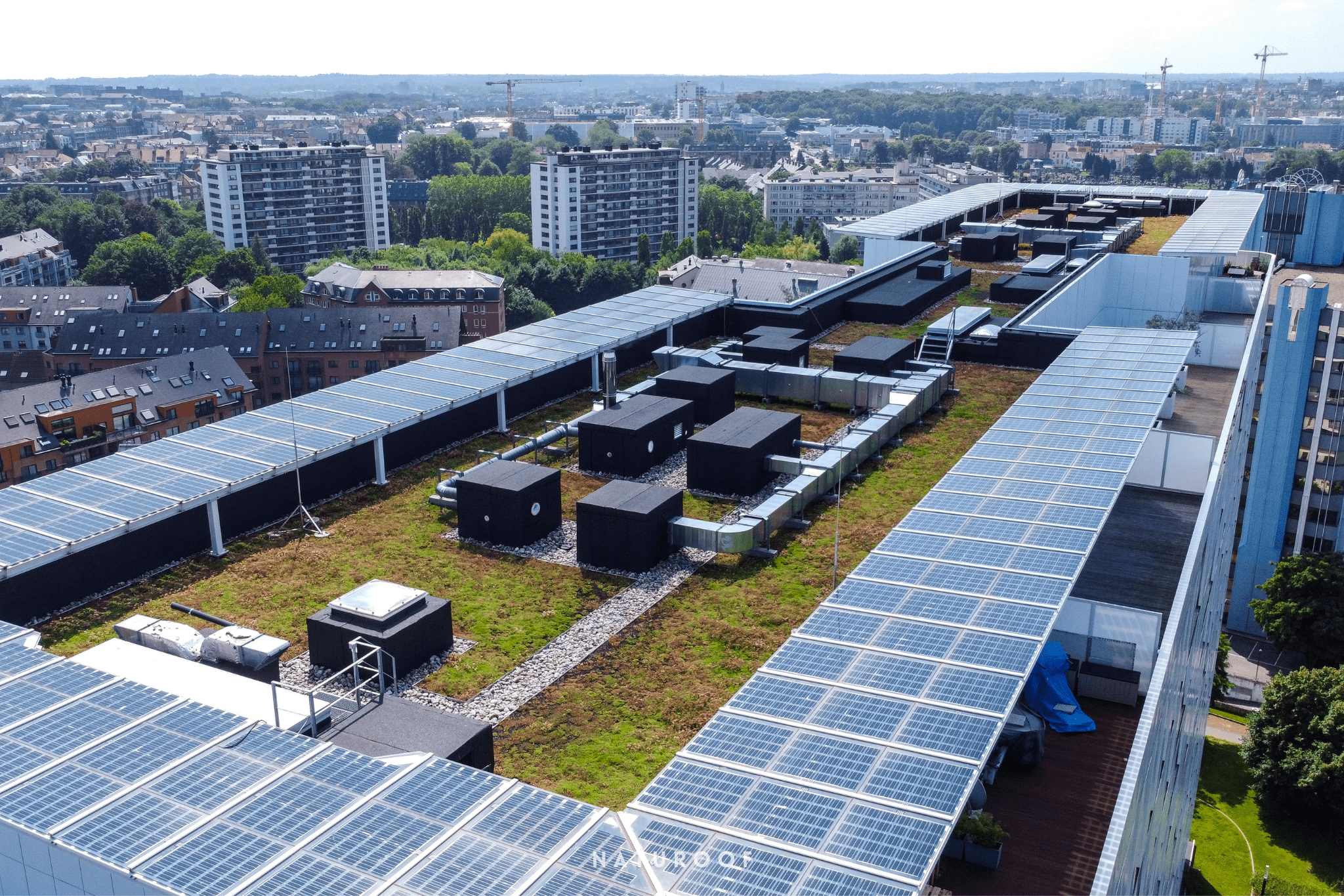 Toiture verte extensive sur la tour Léopold views à Evere (Région Bruxelles-Capitale)