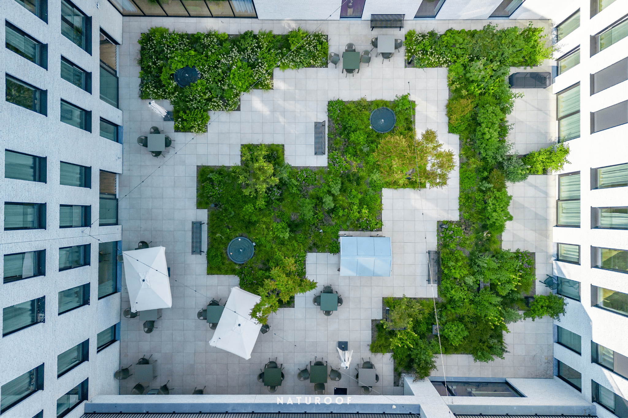 De bewoners hebben tal van voordelen van het wonen onder een groendak. Zo worden alle contactgeluiden met het dak gedempt, wat zorgt voor een aangename omgeving. Ook zuivert de beplanting de lucht rondom het gebouw.