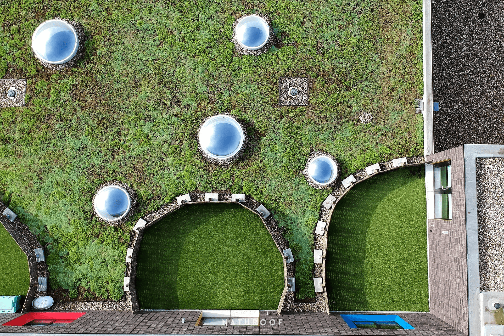 Boven op basisschool De Ark in Roeselare werd dit prachtig sedumdak gerealiseerd.