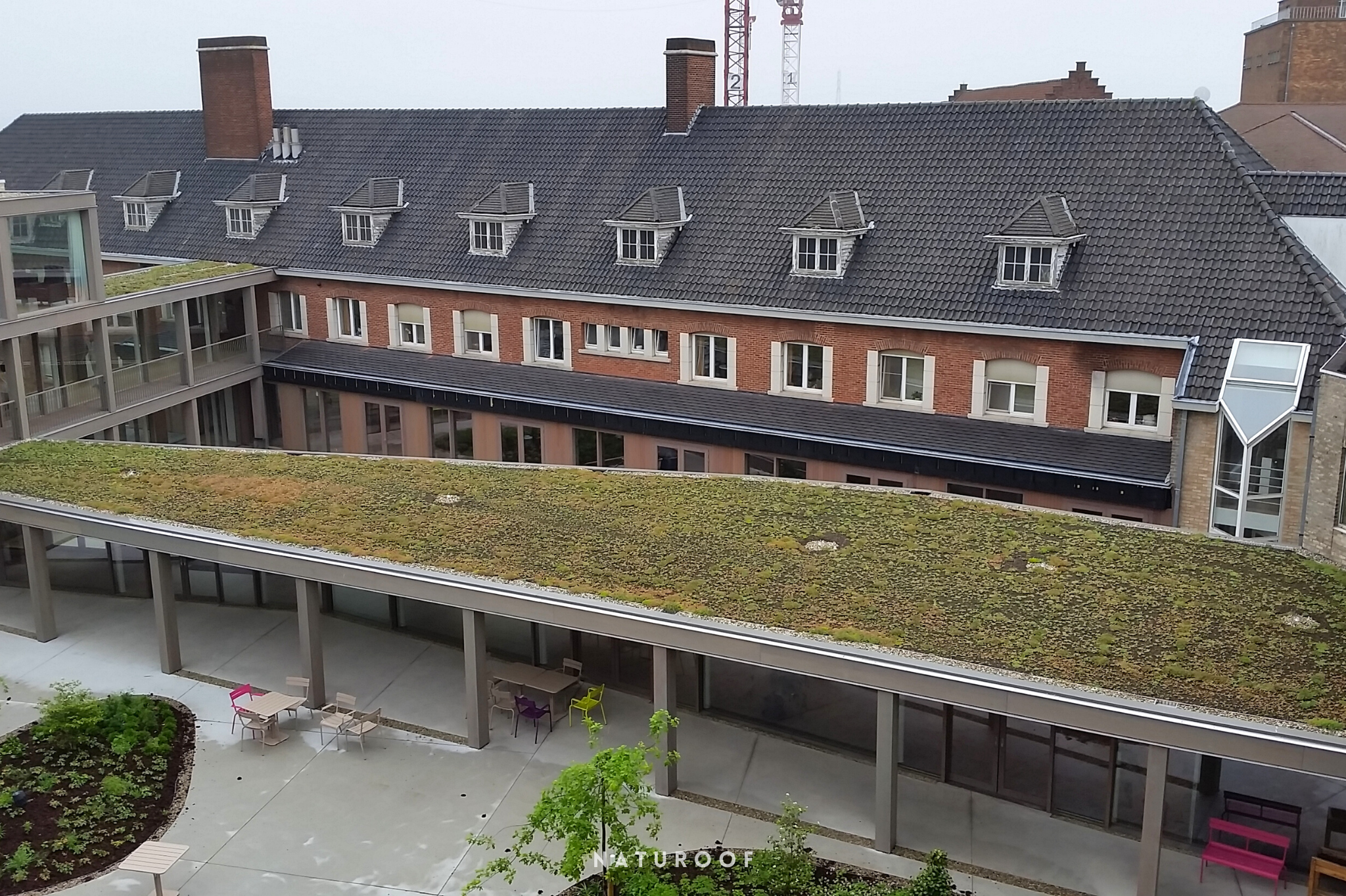 Op het nieuwe woonzorgcentrum ‘Sint Amand’ te Zwevegem, heeft Naturoof enkele daken mogen voorzien van een sedumdak.